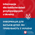 Informacja dla rodziców dzieci przybywających z Ukrainy