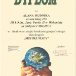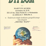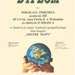W naszym liceum odbyła się XVI edycja Szkolnego Konkursu Geograficznego ,,Mistrz Mapy”. Konkurs dedykowany był uczniom klas drugich i dotyczył znajomości mapy politycznej świata. W pierwszym etapie wzięło udział 29 licealistów, zaś do drugiego etapu zakwalifikowało się  14 osób.
