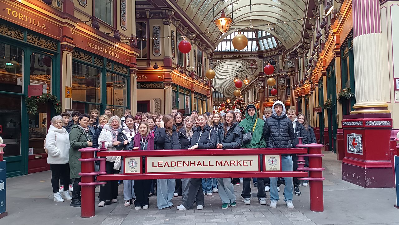 W dniach 15.11 – 21.11.2025 r. młodzież naszego liceum – 53 osoby pod opieką Pani Dyrektor Jolanty Paderewskiej, Pani Marioli Stankiewicz, Pani Maryli Jaskułowskiej i Pani Barbary Kropiewnickiej uczestniczyła w warsztatach językowych w Londynie. Przelot samolotem, mieszkanie u rodzin brytyjskich, walory turystyczne, unikalne zabytki tej multikulturowej stolicy europejskiej wywarły na młodzieży ogromne wrażenie. W Londynie już rozpoczęły się jarmarki bożonarodzeniowe, co także dodało uroku tej wspaniałej wyprawie. Piękne dekoracje świąteczne, choinki ozdobione migoczącymi światełkami przypominały o nadchodzących Świętach Bożego Narodzenia.