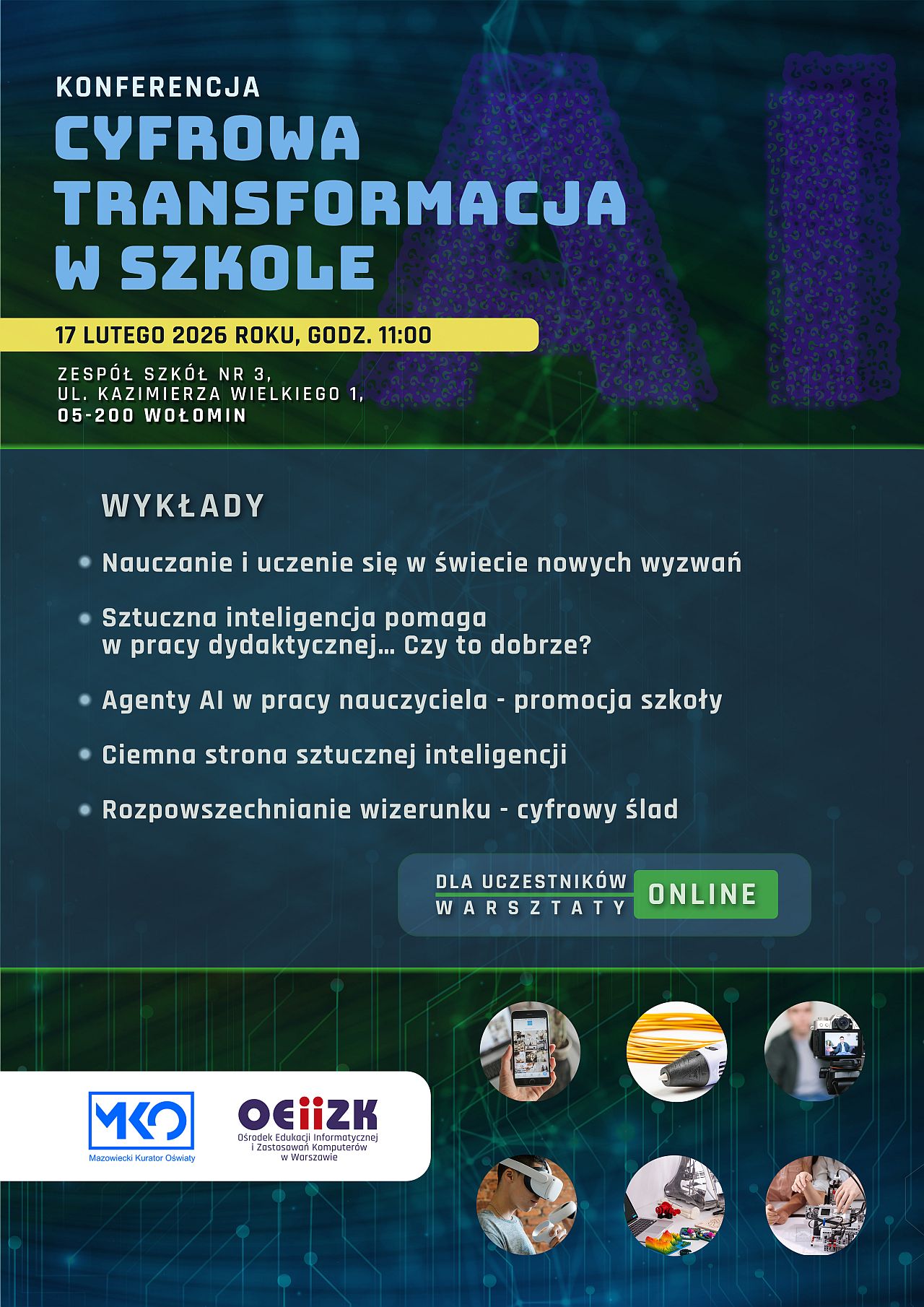 Ze względów organizacyjnych swój udział w konferencji i warsztatach należy zgłosić poprzez formularz: https://zapisy_wolomin.oeiizk.waw.pl